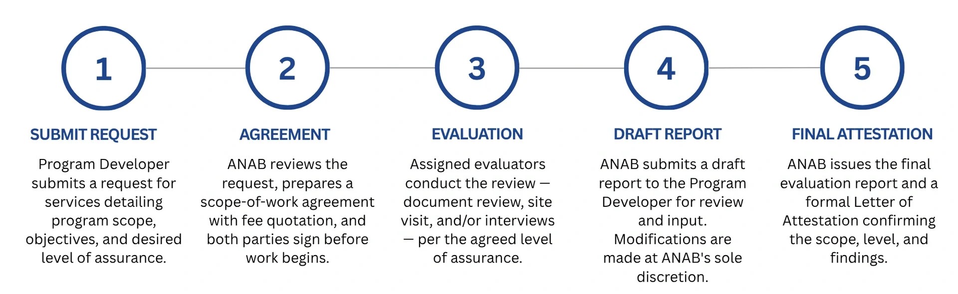 From initial request to final attestation, the QAEP follows a structured, transparent process managed by ANAB staff and qualified evaluators.